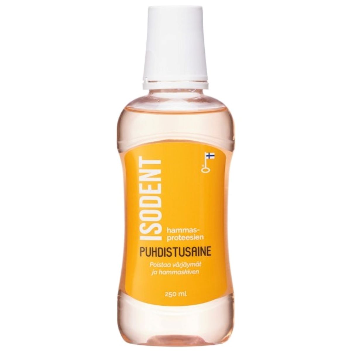 IsoDent hammasproteesien puhdistusaine on nestemäinen tiiviste ja se myydään riittoisassa 250 ml pullossa. Pullo kestää yhdellä käyttäjällä jopa 3 kuukautta päivittäisessä käytössä. Tällä hammasproteesien puhdistusaineella päivittäinen puhdistus on helppoa, taloudellista ja turvallista.